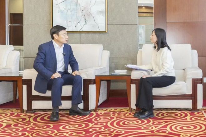 圖為毛新平院士接受《中國冶金報(bào)》記者專訪(特約通訊員 藍(lán)義高 攝影)